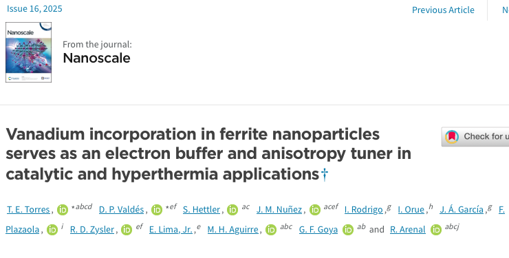 T. E. Torres, D. P. Valdés, S. Hettler, J. M. Núñez, I. Rodrigo, I. Orue, Á. García, Plazaola, R. D. Zysler, E. Lima, Jr., M. H. Aguirre, G. F. Goya and R. Arenal